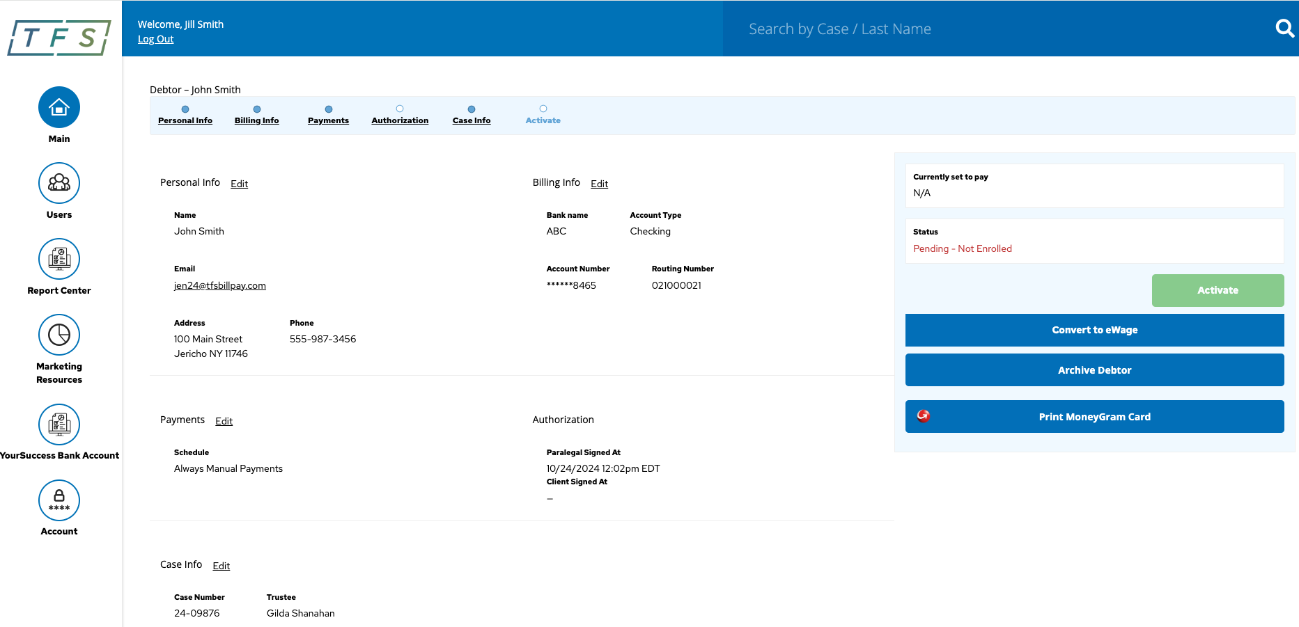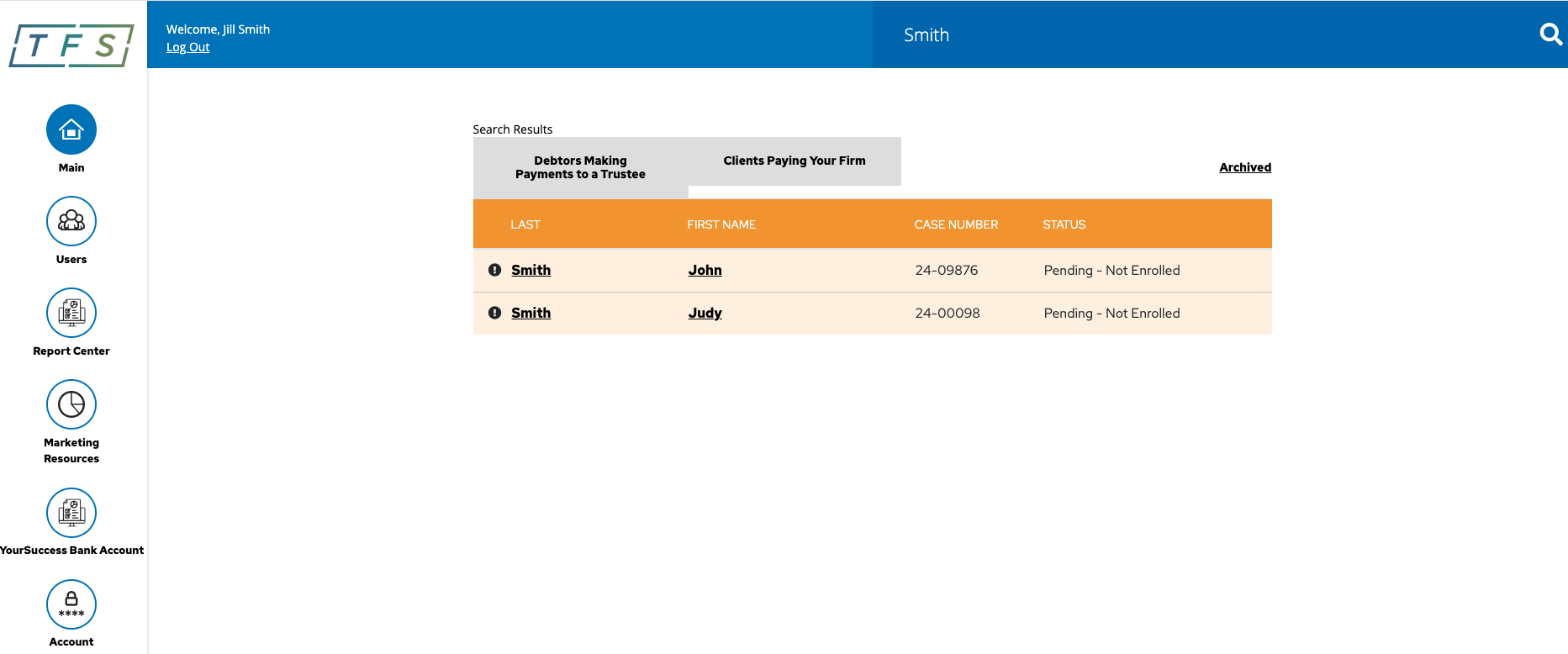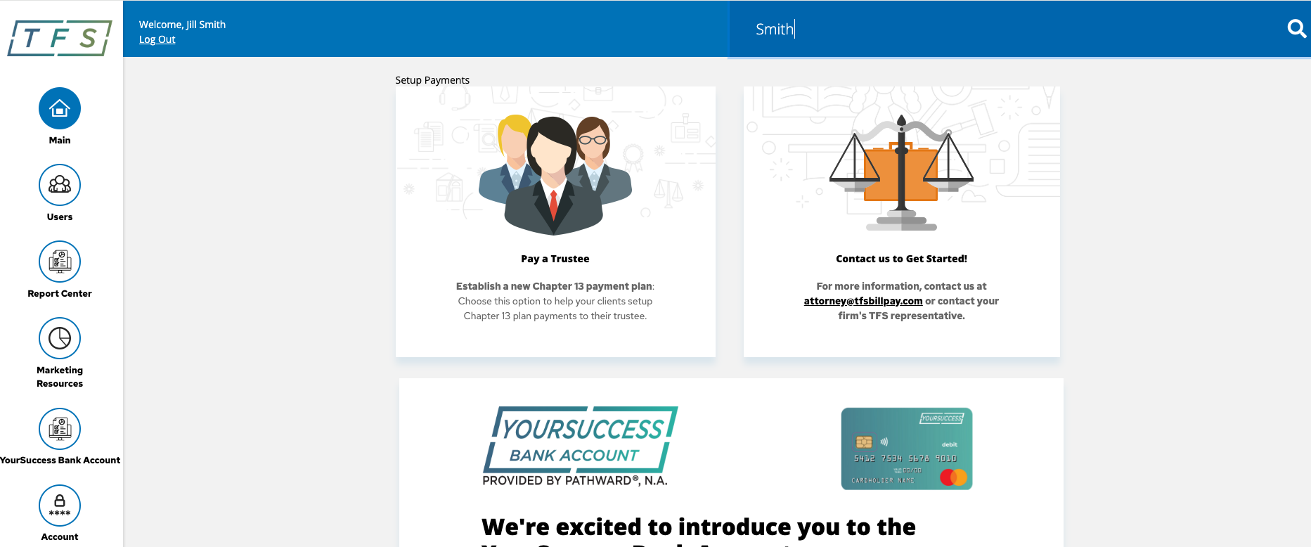 Welcome to your TFS Portal – your one-stop solution for managing client case details effortlessly. Access case numbers, trustees, payment schedules, and more with just a few clicks. Simplify your workflow and stay organized, all in one secure platform.